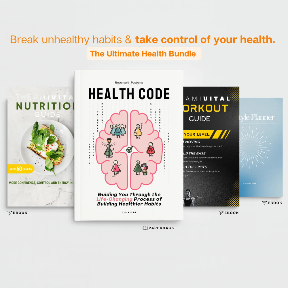 The groundbreaking book Health Code, bundled with the complete array of AmiVital health guides, equips you with every tool needed to conquer bad habits and reshape your life one sustainable step at a time.