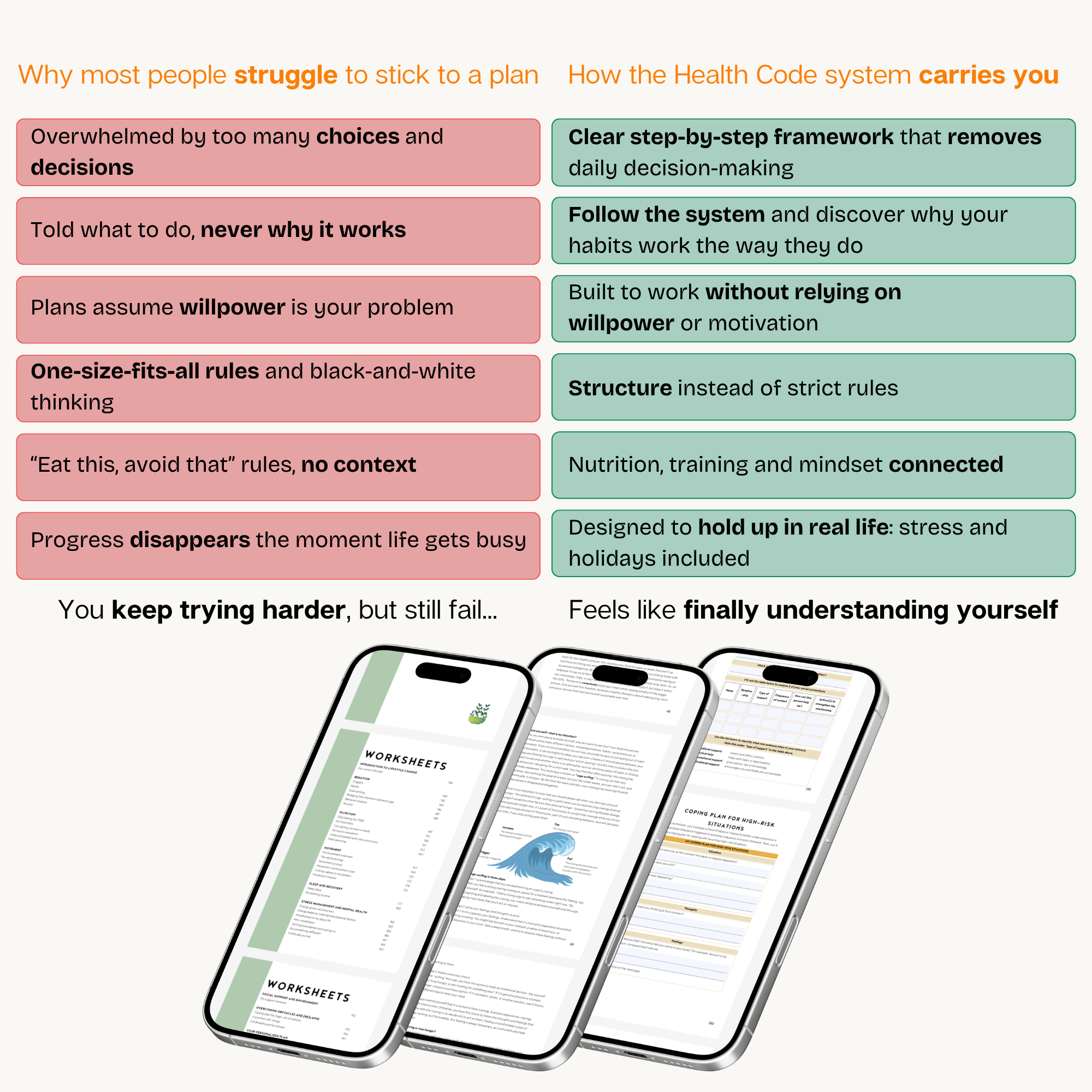 Health Code is different. It teaches you principles, not rules. You learn how to eat, train, and structure your lifestyle in a way that fits your real life, not some influencer’s routine.