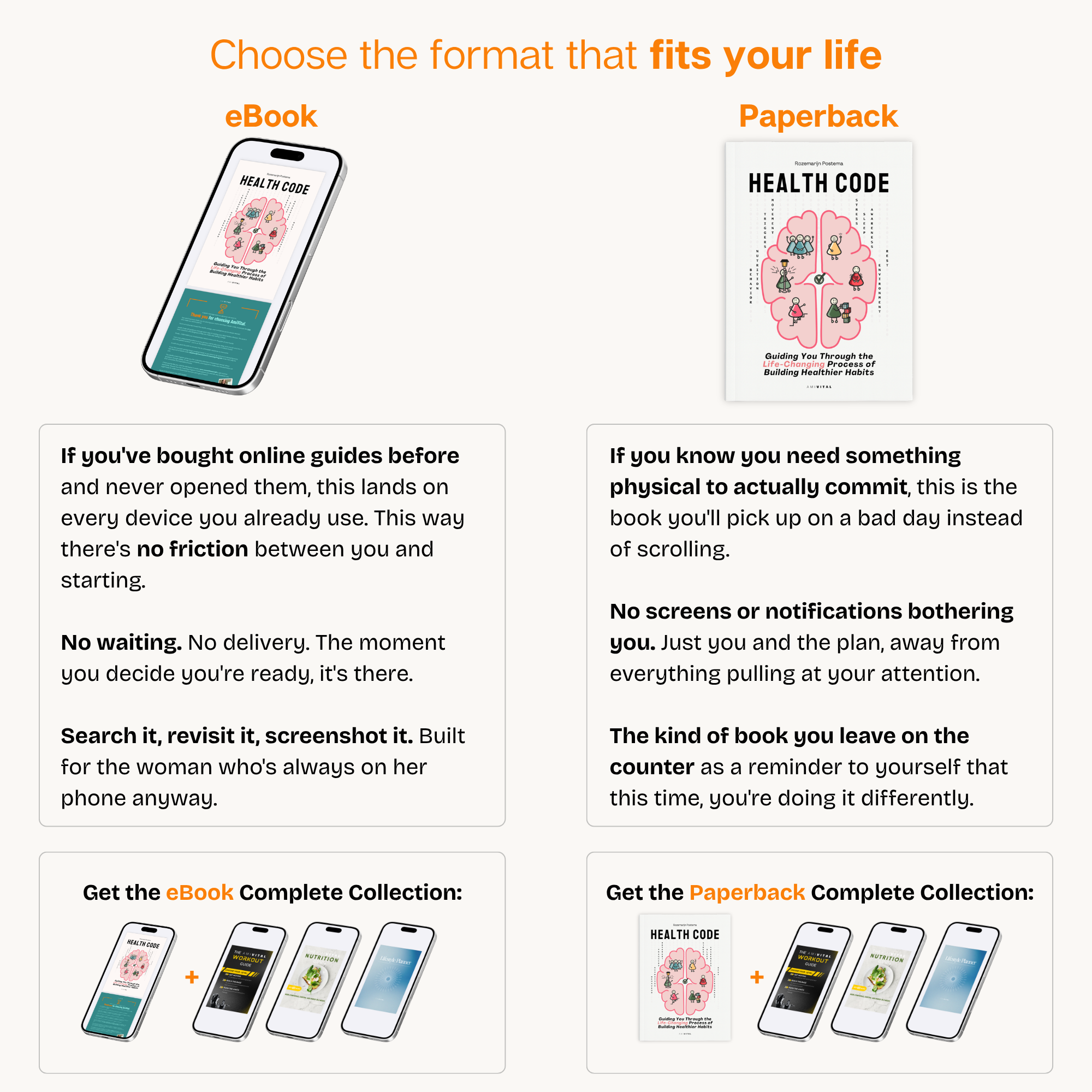 Health Code is built on flexibility and long term sustainability. You’ll understand how your body works, how to balance food without guilt, and how to stay consistent without being extreme.
